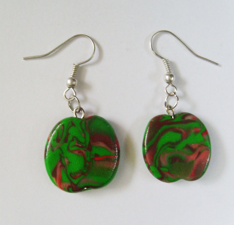 Náušnice tvorené ručne z polymérovej hmoty a komponentov striebornej farby, lakované.